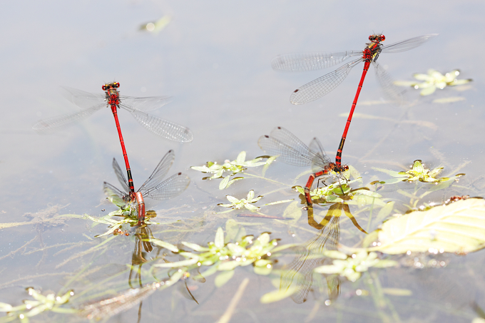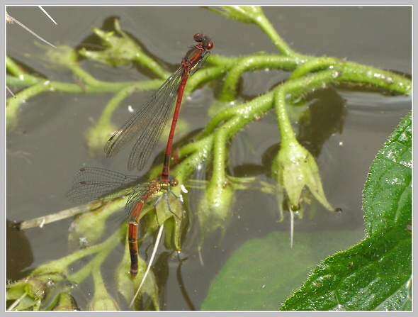 Šidélko ruměnné (Pyrrhosoma nymphula, Sulzer 1776) a kladení vajíček
