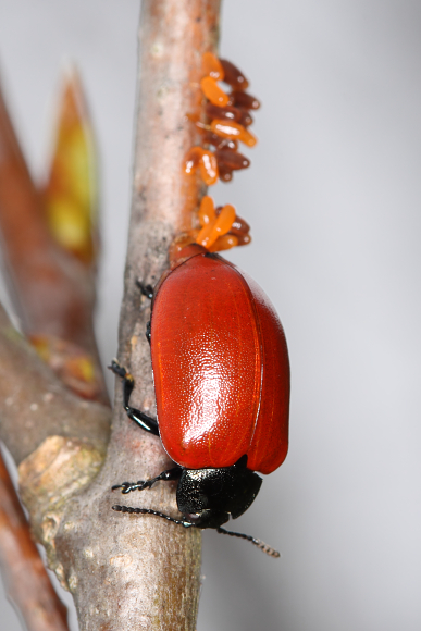 Mandelinka topolová (Chrysomela populi, Linné 1758) a kladení vajíček