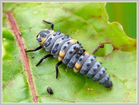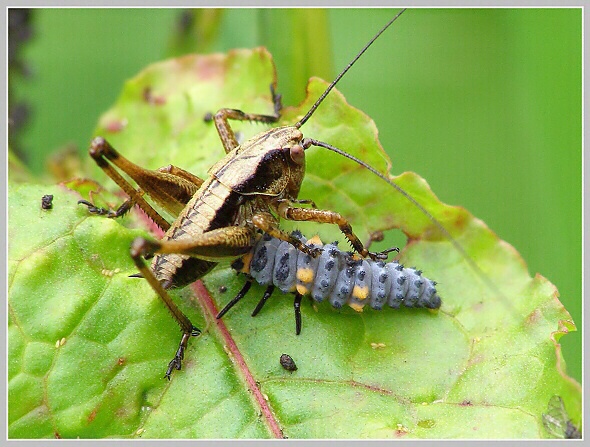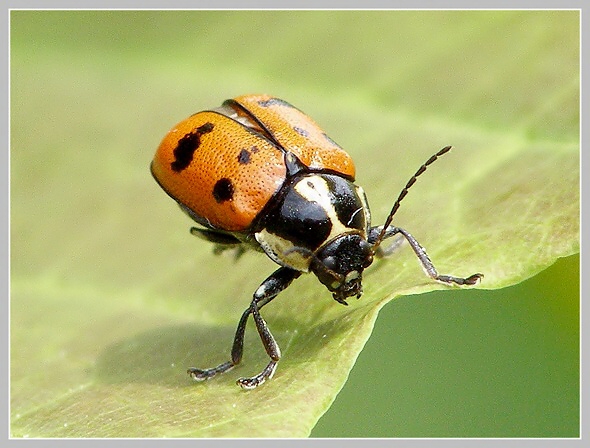 Krytohlav (sp. Cryptocephalus, mandelinkovití) a larva slunéčka