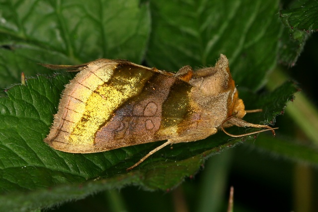 Kovolesklec šedivkový (Diachrysia chrysitis) a nepřátelé motýlů